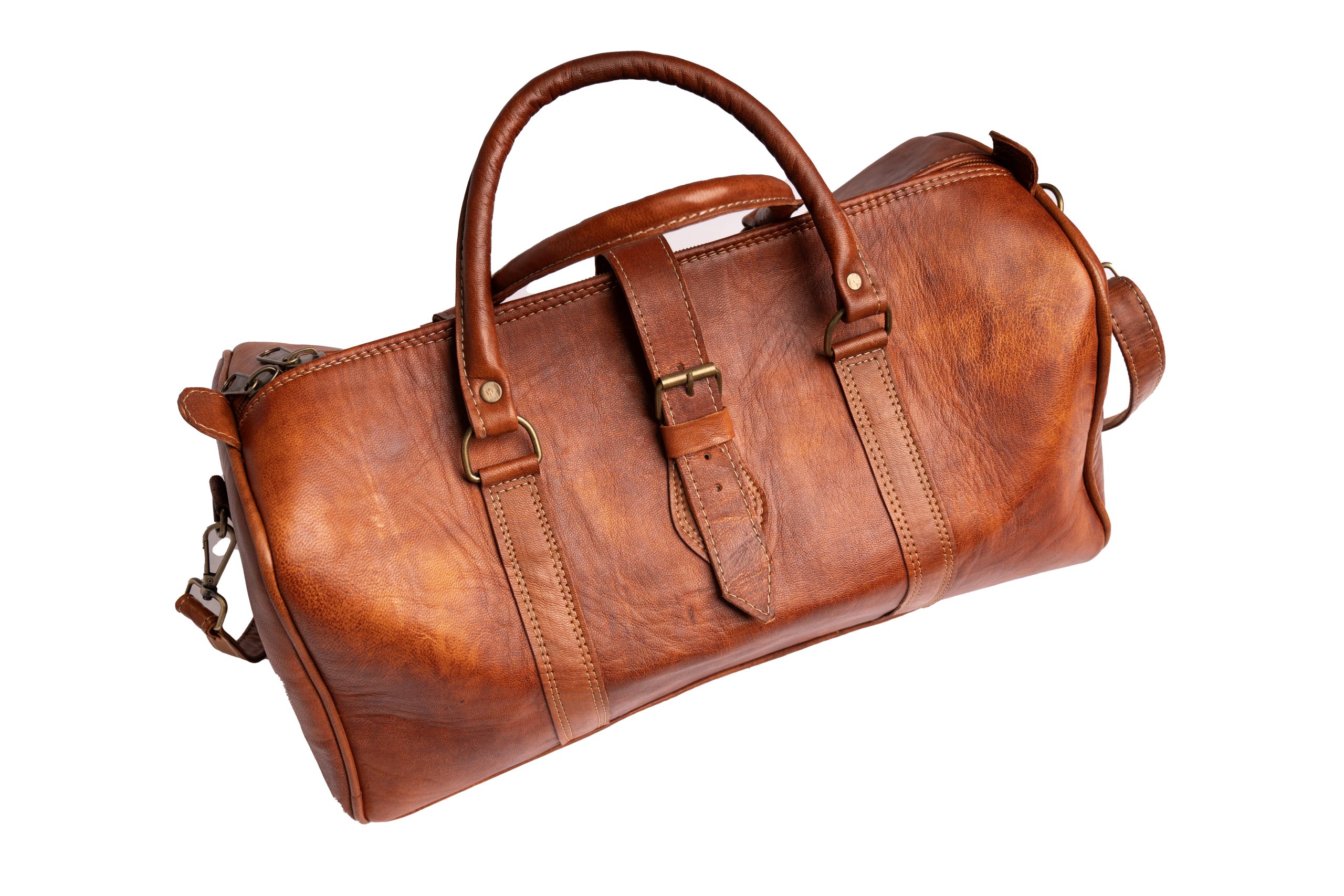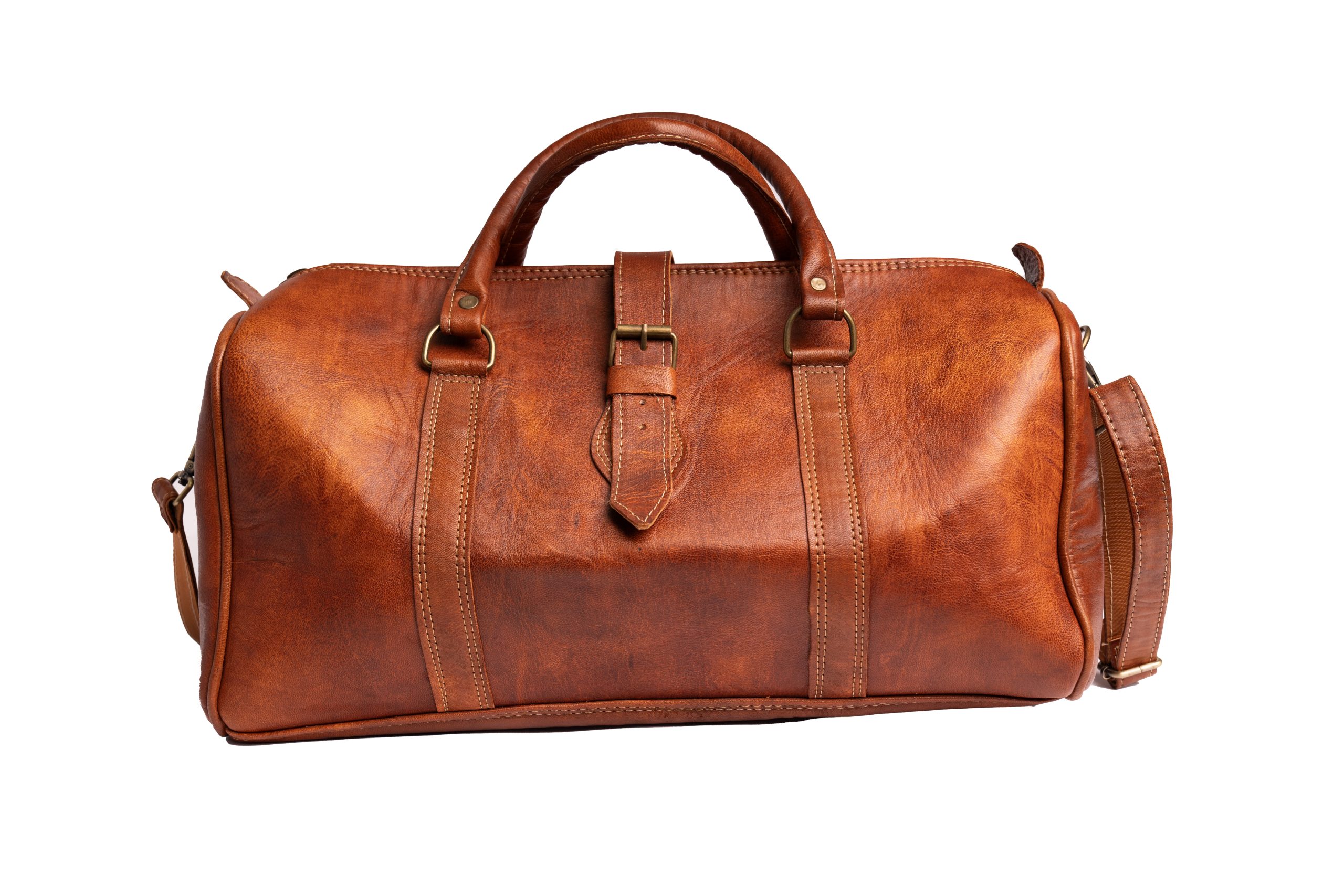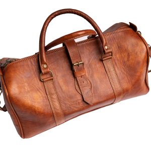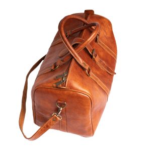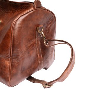 Crafted from premium genuine leather, this cognac duffle bag combines vintage character