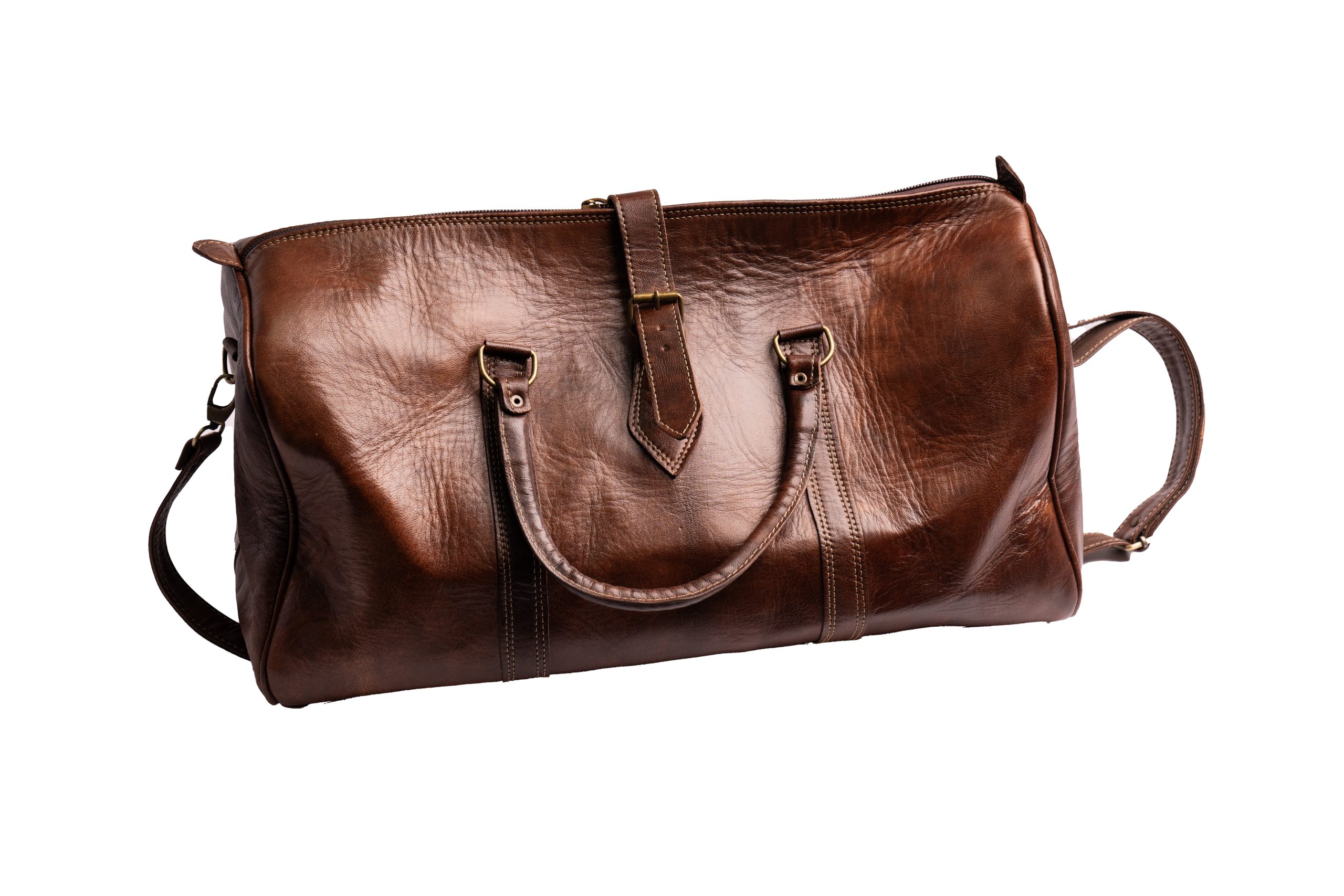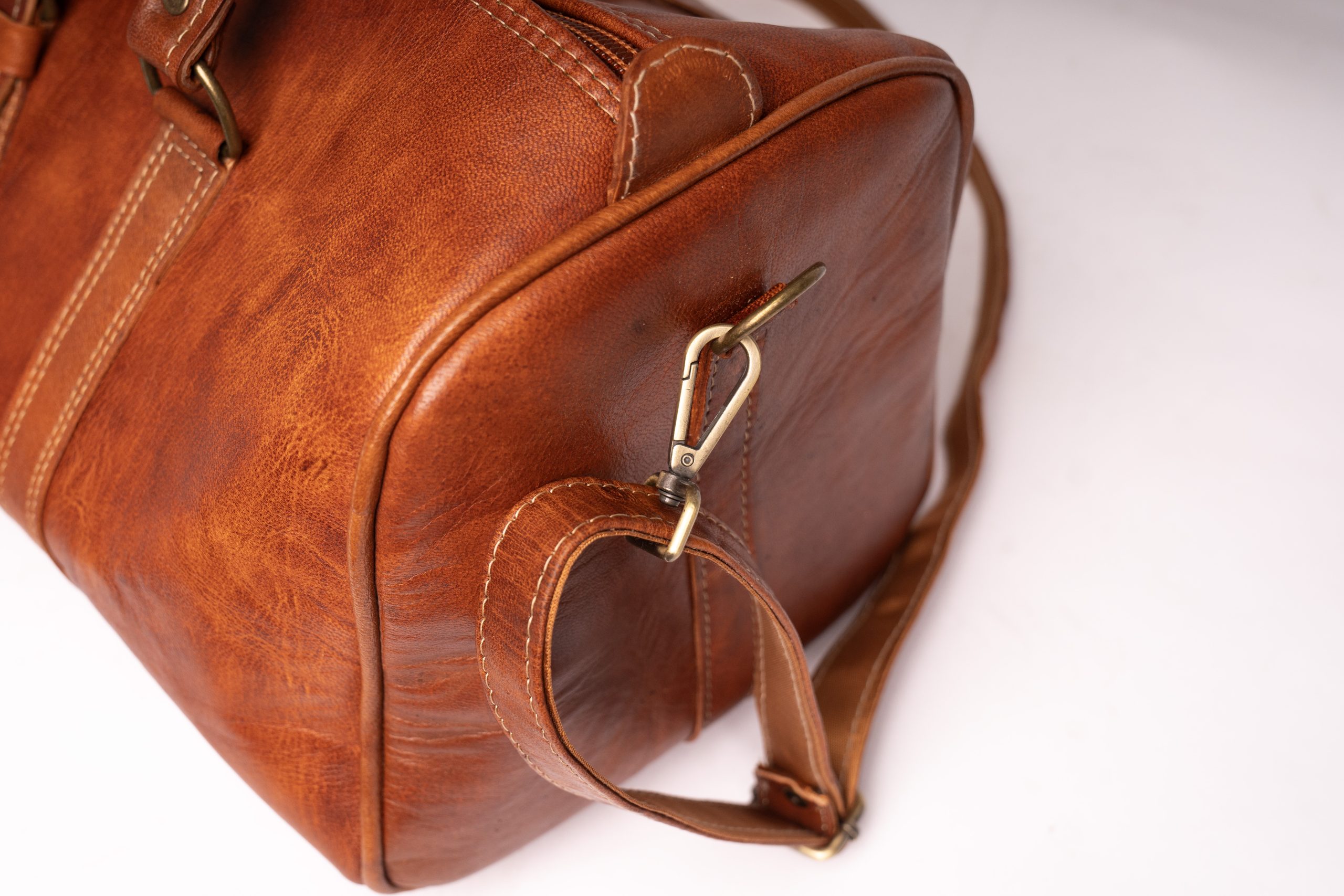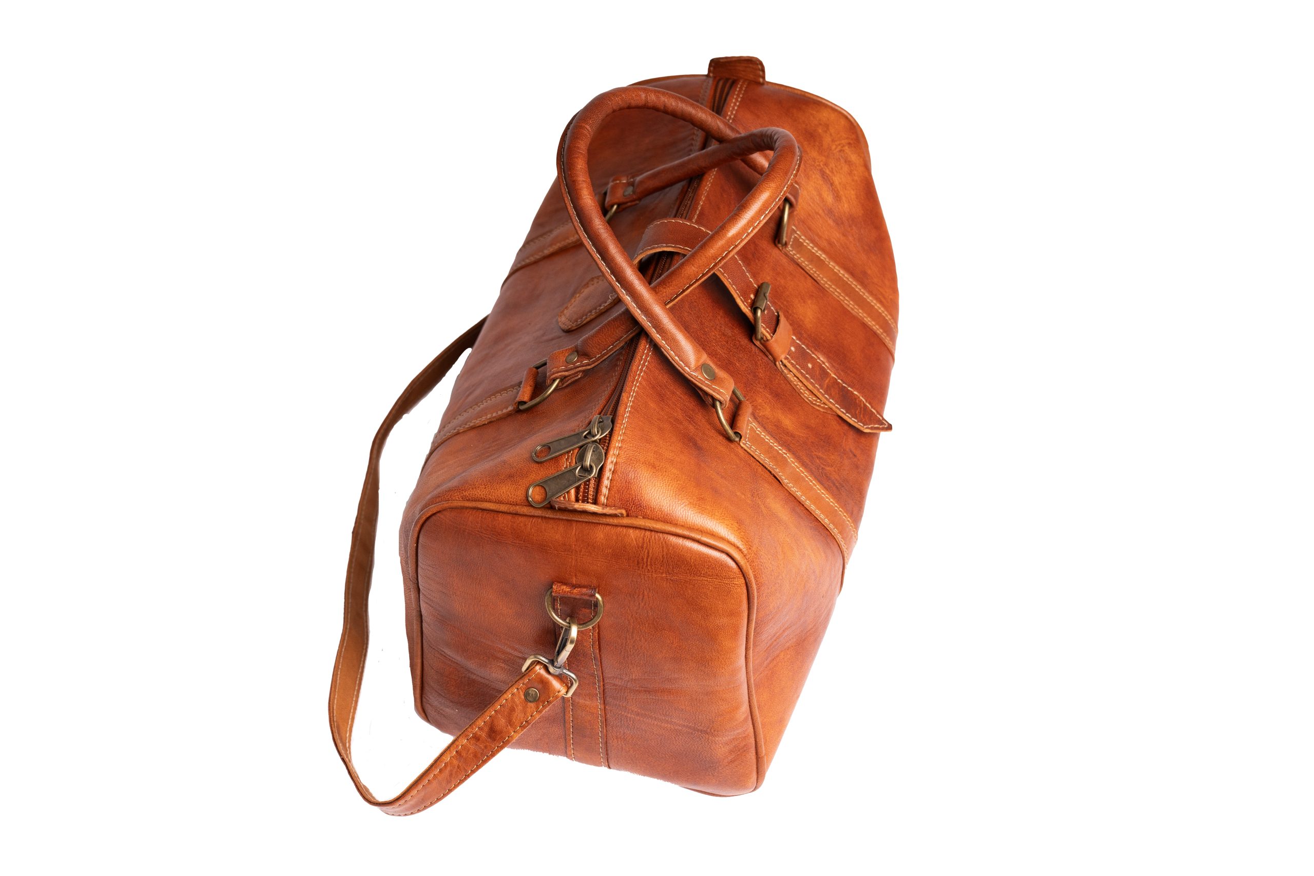 Crafted from premium genuine leather, this cognac duffle bag combines vintage character