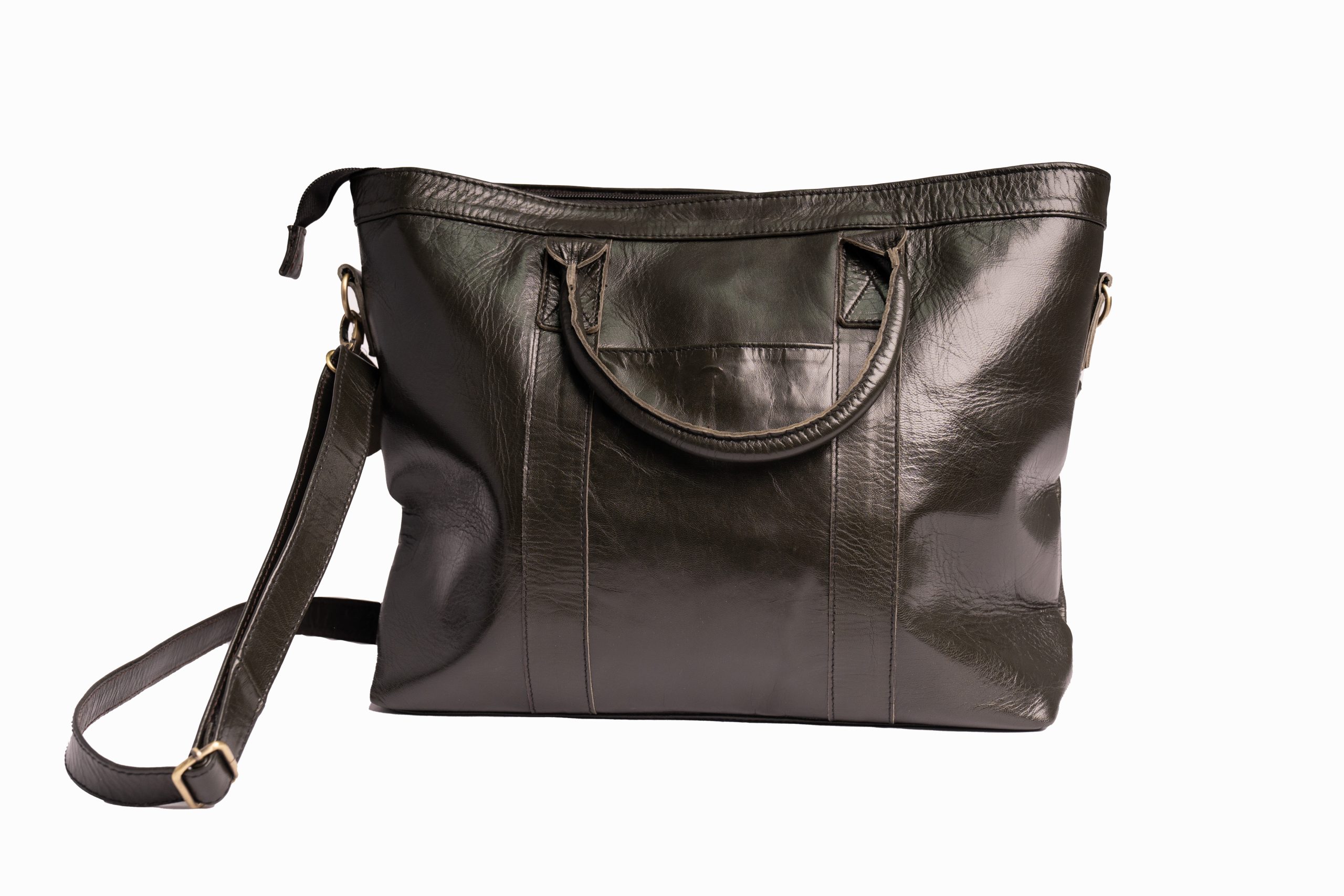 This dark green genuine leather tote bag combines sophistication with everyday practicality.